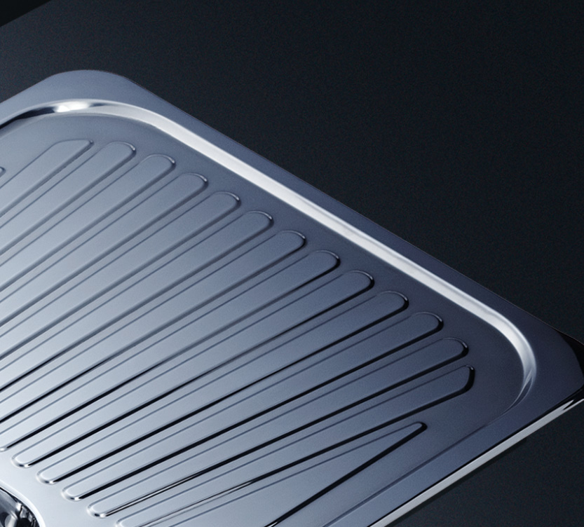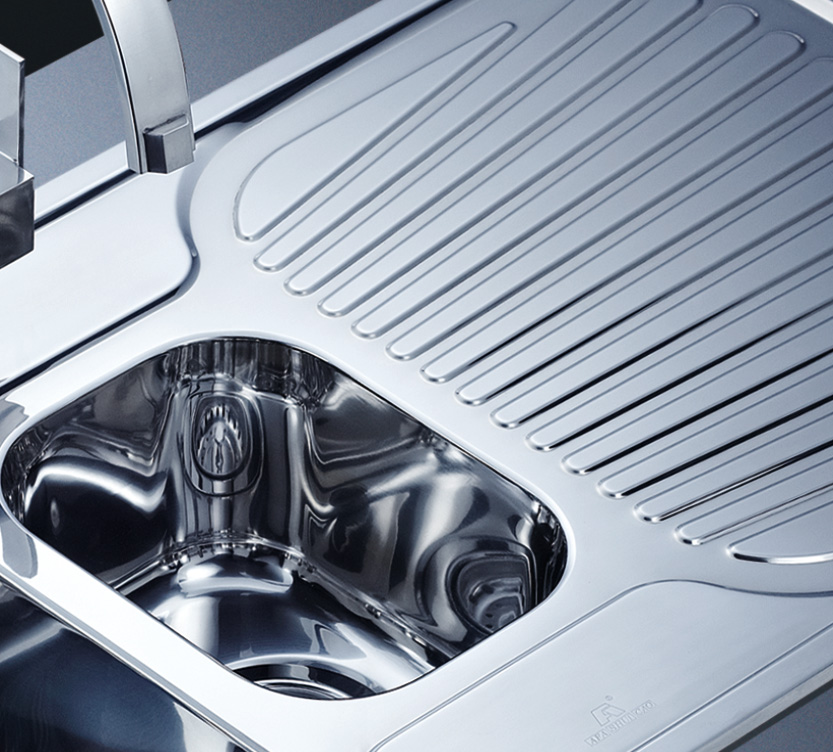 阿發(fā)水槽立邊采用國(guó)際先進(jìn)的10-25°小R角一次成型拉伸技術(shù),更具立體感與時(shí)尚潮流,亦能充分?jǐn)U展水槽利用空間;一次成型拉伸技術(shù),杜絕了焊接工藝易產(chǎn)生的水槽生銹,脫焊事故,充分保障水槽50年以上的使用壽命
