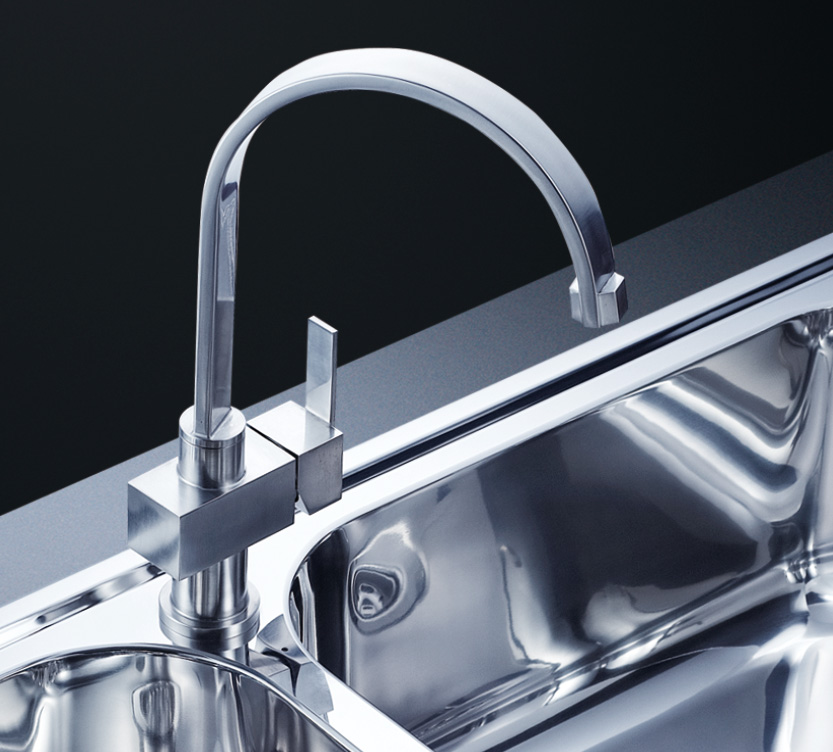 阿發水槽立邊采用國際先進的10-25°小R角一次成型拉伸技術,更具立體感與時尚潮流,亦能充分擴展水槽利用空間;一次成型拉伸技術,杜絕了焊接工藝易產生的水槽生銹,脫焊事故,充分保障水槽50年以上的使用壽命