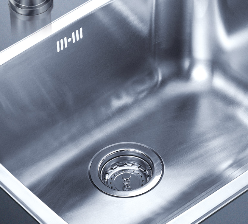 阿發(fā)水槽整體經(jīng)拉絲處理,質(zhì)地更加光滑,視覺更加柔和。能有效抵擋異物撞擊,刮傷及磨損,防止油污沾染,常用常新;柔和的光澤令水槽平添高雅氣質(zhì),更能避免鏡面材質(zhì)反射的光污染