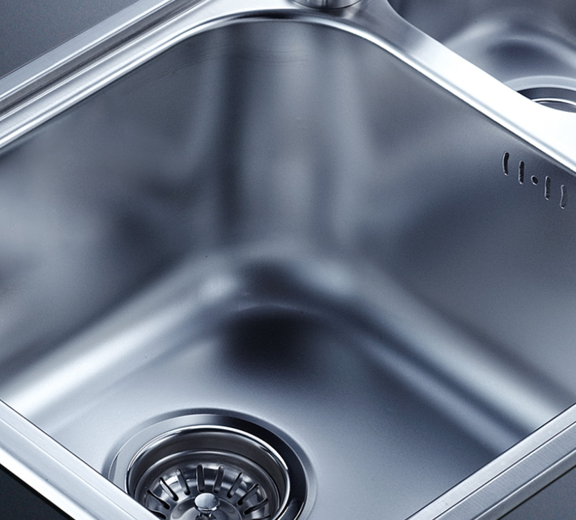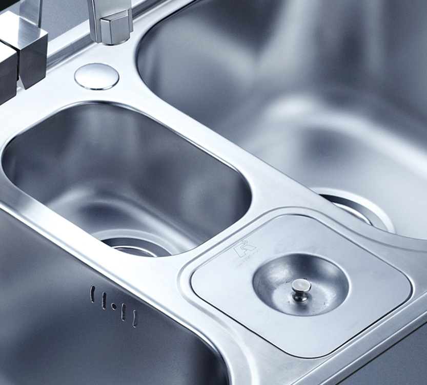 阿發水槽立邊采用國際先進的10-25°小R角一次成型拉伸技術,更具立體感與時尚潮流,亦能充分擴展水槽利用空間;一次成型拉伸技術,杜絕了焊接工藝易產生的水槽生銹,脫焊事故,充分保障水槽50年以上的使用壽命