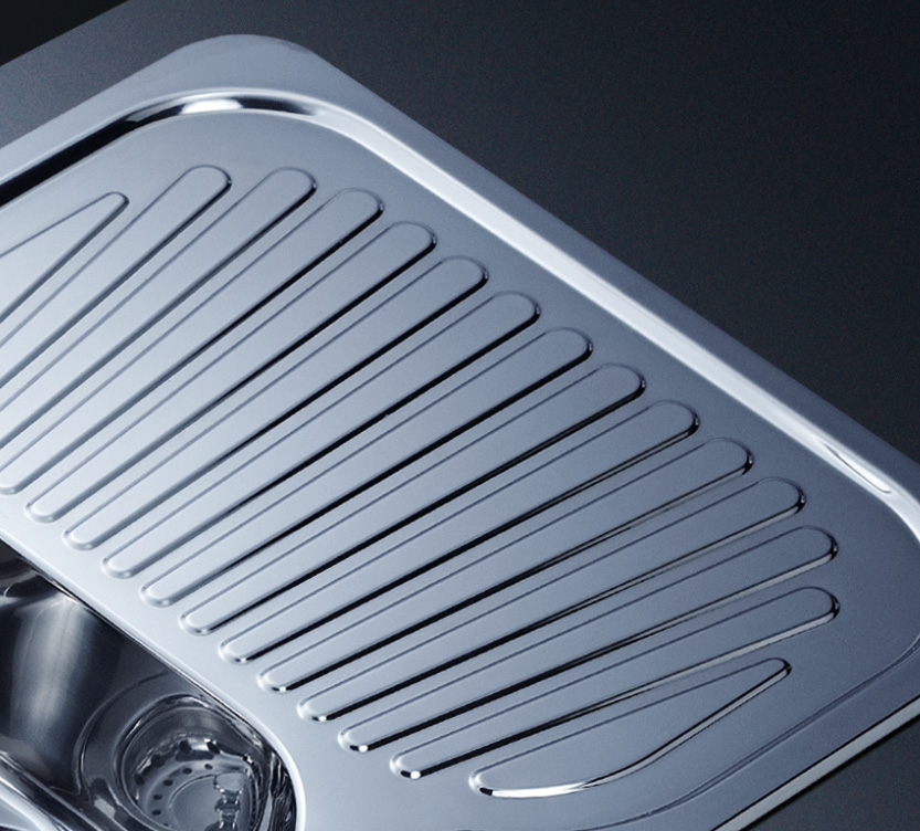 阿發水槽立邊采用國際先進的10-25°小R角一次成型拉伸技術,更具立體感與時尚潮流,亦能充分擴展水槽利用空間;一次成型拉伸技術,杜絕了焊接工藝易產生的水槽生銹,脫焊事故,充分保障水槽50年以上的使用壽命
