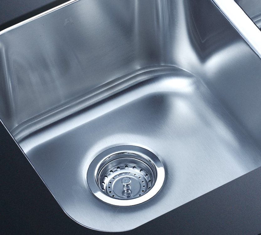 阿發水槽整體經拉絲處理,質地更加光滑,視覺更加柔和。能有效抵擋異物撞擊,刮傷及磨損,防止油污沾染,常用常新;柔和的光澤令水槽平添高雅氣質,更能避免鏡面材質反射的光污染