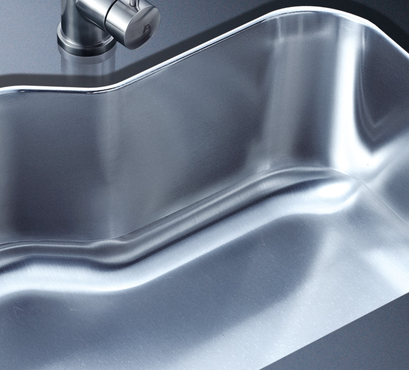 阿發水槽立邊采用國際先進的10-25°小R角一次成型拉伸技術,更具立體感與時尚潮流,亦能充分擴展水槽利用空間;一次成型拉伸技術,杜絕了焊接工藝易產生的水槽生銹,脫焊事故,充分保障水槽50年以上的使用壽命