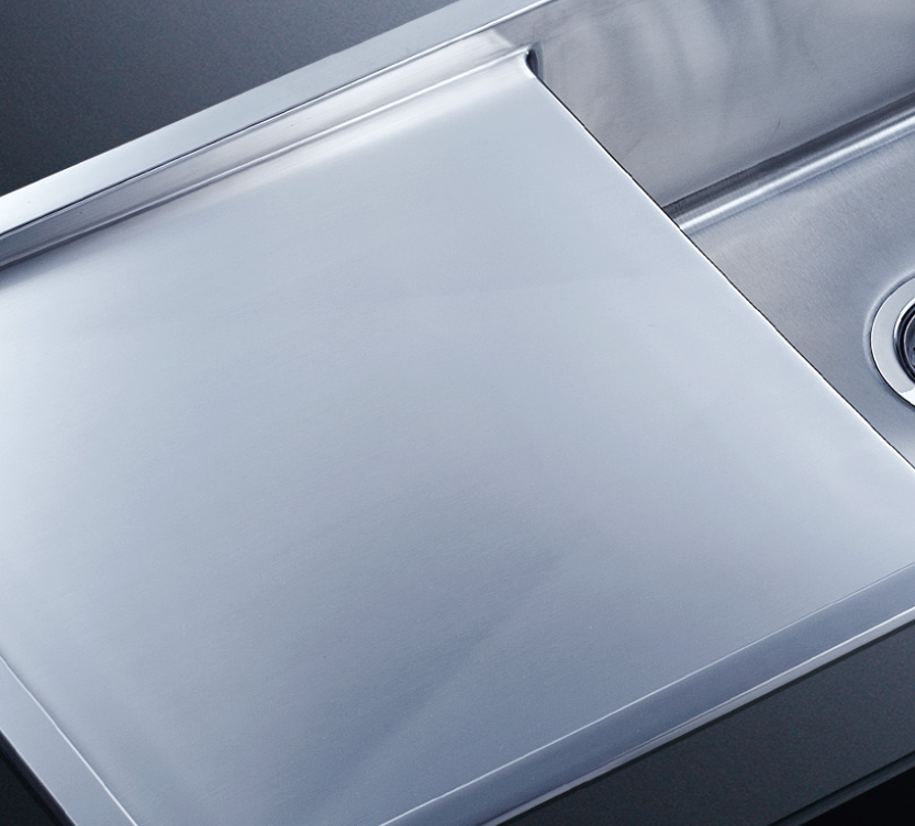 阿發(fā)水槽整體經(jīng)拉絲處理,質地更加光滑,視覺更加柔和。能有效抵擋異物撞擊,刮傷及磨損,防止油污沾染,常用常新;柔和的光澤令水槽平添高雅氣質,更能避免鏡面材質反射的光污染