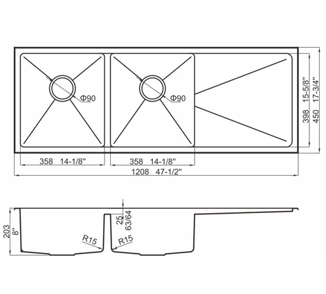 槽底采用斜面壓痕,四輻導流槽設計,與平面壓痕和無痕水槽相比,導水更為流暢,下水更迅速,能有效防止積水,消除沉淀物