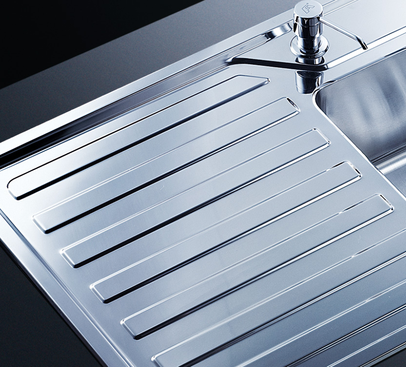 阿發水槽立邊采用國際先進的10-25°小R角一次成型拉伸技術,更具立體感與時尚潮流,亦能充分擴展水槽利用空間;一次成型拉伸技術,杜絕了焊接工藝易產生的水槽生銹,脫焊事故,充分保障水槽50年以上的使用壽命