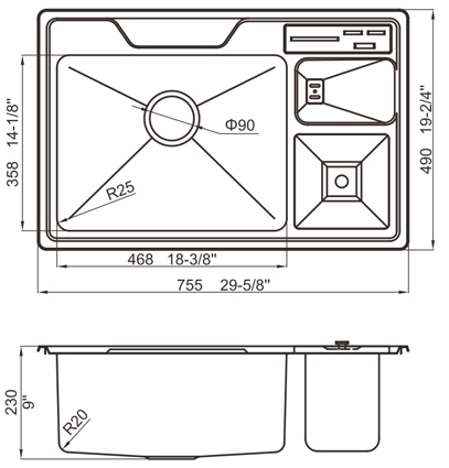 槽底采用斜面壓痕,四輻導(dǎo)流槽設(shè)計(jì),與平面壓痕和無痕水槽相比,導(dǎo)水更為流暢,下水更迅速,能有效防止積水,消除沉淀物
