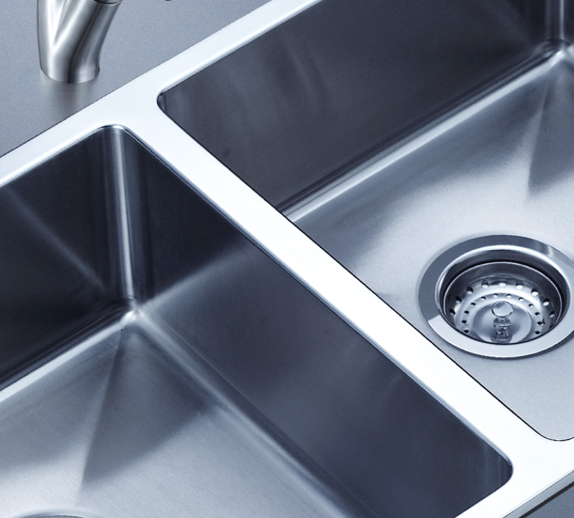 阿發水槽整體經拉絲處理,質地更加光滑,視覺更加柔和。能有效抵擋異物撞擊,刮傷及磨損,防止油污沾染,常用常新;柔和的光澤令水槽平添高雅氣質,更能避免鏡面材質反射的光污染