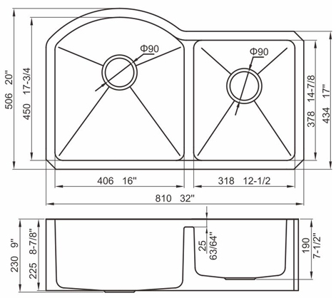 槽底采用斜面壓痕,四輻導流槽設計,與平面壓痕和無痕水槽相比,導水更為流暢,下水更迅速,能有效防止積水,消除沉淀物