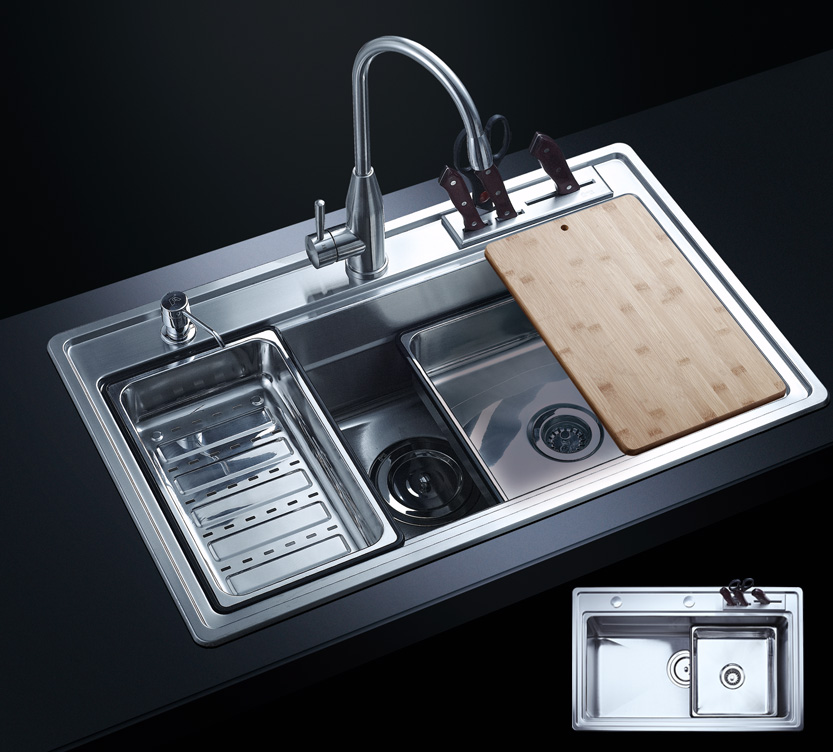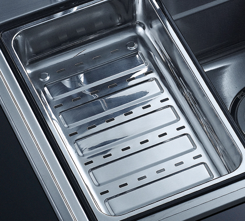 水槽四邊條采用一次成型的折彎加強筋工藝,雙倍堅固,承重力更強,解決了普通焊接工藝容易出現的凹點、脫焊、易割手等問題。專業配置的密封條和固定夾,安裝平整度高,不滲水,不松動