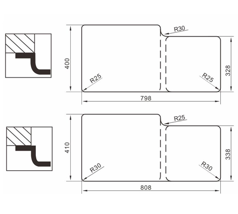 阿發(fā)水槽立邊采用國(guó)際先進(jìn)的10-25°小R角一次成型拉伸技術(shù),更具立體感與時(shí)尚潮流,亦能充分?jǐn)U展水槽利用空間;一次成型拉伸技術(shù),杜絕了焊接工藝易產(chǎn)生的水槽生銹,脫焊事故,充分保障水槽50年以上的使用壽命