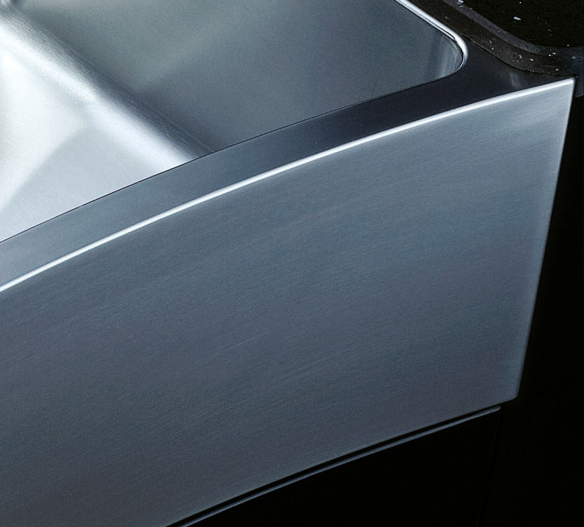 阿發水槽立邊采用國際先進的10-25°小R角一次成型拉伸技術,更具立體感與時尚潮流,亦能充分擴展水槽利用空間;一次成型拉伸技術,杜絕了焊接工藝易產生的水槽生銹,脫焊事故,充分保障水槽50年以上的使用壽命