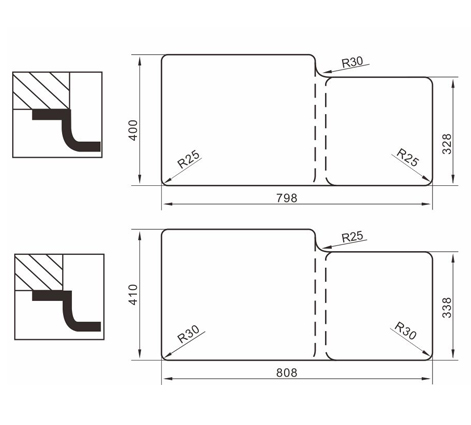 水槽四邊條采用一次成型的折彎加強筋工藝,雙倍堅固,承重力更強,解決了普通焊接工藝容易出現的凹點、脫焊、易割手等問題。專業配置的密封條和固定夾,安裝平整度高,不滲水,不松動